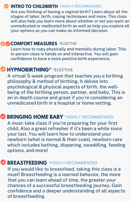 I’m pregnant! What classes do I take and where do I start? What Classes to Take Quiz Email(Required) Enter your email address to get your results!Start Here(Required) Vaginal Birth Scheduled Cesarean Not Sure Vaginal Option 1 Medicated Unmedicated Medicated Option Hospital Unmedicated Options Hospital Home Birth or Birth Center Cesarean Option 1 Medicated Cesarean Option 2 Hospital